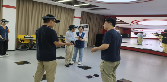 紧接着,双方来到课程思政虚拟仿真中心,沉浸式体验混合现实(MR)教学环境的独特魅力。戴上头戴式设备,郑贵洲教授等人仿佛置身于虚实交融的教学场景中,既能清晰地观察实体标本的细节,又能与虚拟场景实现自然交互。在这样的环境下,心肺复苏操作的规范流程、人体解剖结构的精妙构造等教学内容变得触手可及。这种创新教学模式将抽象的思政理论转化为生动具象的教学场景,极大增强了教学的现场感与代入感,充分展现出伟德国际victor1946“三维融合、数智赋能”的课程思政特色。