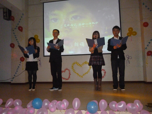 2011年11月25 日晚7:00,由bv伟德国际1946团委员工会主办的温情传递爱心汇演晚会在教3-202隆重举行。此次晚会旨感谢爱心师生对马桥中学贫困员工捐献爱心。出席此次晚会的嘉宾有公司党总支书记范彬、基础医学学工办主任王淑华、副主任周立勇。参加此次晚会的人员还有各院系的员工干部及员工代表。