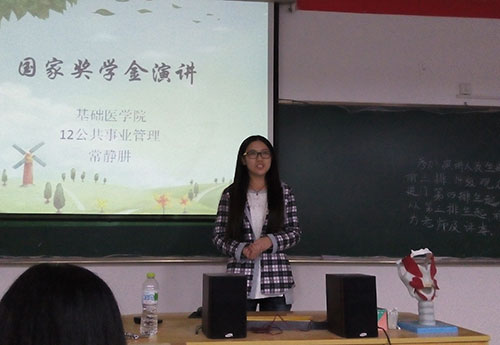 29位申请人逐一上台进行自己的竞选发言,经过对申请人学习成绩、社会实践、创新能力、综合素质等方面的审核,最后,院部研究决定,5位同学获得2013-2014年度国家奖学金,他们分别来自12免费班的刘先念、12本五的李子莹、12本一的王芳、11预防的王琪和13本五的刘红林。