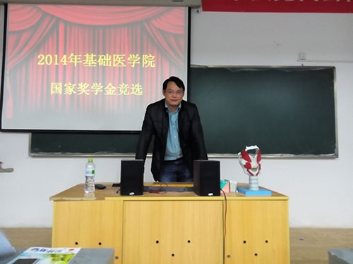 10月30日晚七时,2014年bv伟德国际1946国家奖学金竞选活动在医药楼1-302拉开帷幕,此次竞选特别邀请bv伟德国际1946副书记佘同辉博士、学工办主任周立勇老师、夏阳老师及林宁老师出席。