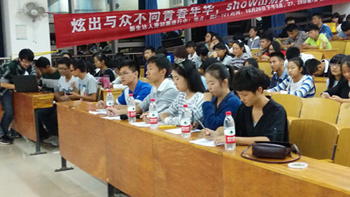在这深秋的夜晚,让人期待已久的由bv伟德国际1946团委员工会承办的第五届新生达人秀的初赛终于在温泉校区拉开了帷幕。本届新生达人秀初赛邀请了校团委文艺部部长李文鸿、校广播台节目部主编黄桦、第四届新生达人秀冠军冯泽鹏、bv伟德国际194612、13级文艺部部长彭书吉和吴姗出任评委嘉宾。