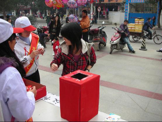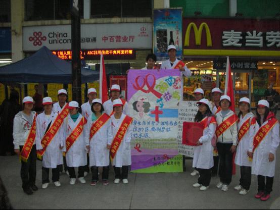 2010年12月1号晚7:00,由咸宁公司bv伟德国际1946团委员工会主办及公司考评部协办的“世界艾滋病日”宣传活动在校西区温馨展开。学工处王孝才处长,吕仲茂副处长,徐扬科长,校团委马世玉书记,徐蕾副书记亲临现场,与bv伟德国际1946的志愿者们一同进行“关爱艾滋病人”的相关宣传活动。