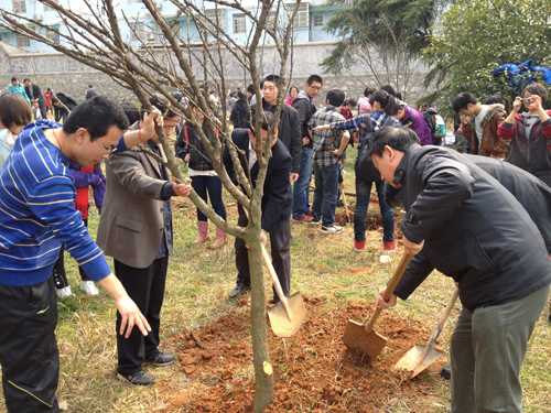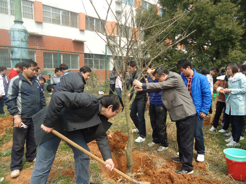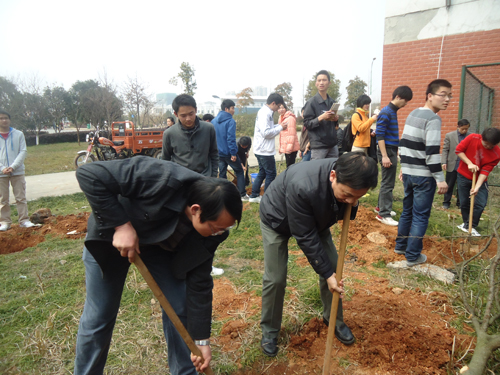 阳春三月,草长莺飞。为了呼吁在校员工的环保意识,营造良好的校园气息,3月14日中午,bv伟德国际1946各班员工早早在解剖楼旁空地忙碌起来,为即将开始的植树活动做好准备工作。公司党总支书记范杉教授、公司党总支副书记佘同辉博士、bv伟德国际1946团委书记周立勇老师以及罗德生教授等本院系各班班主任也兴味盎然地加入到植树的行列中。