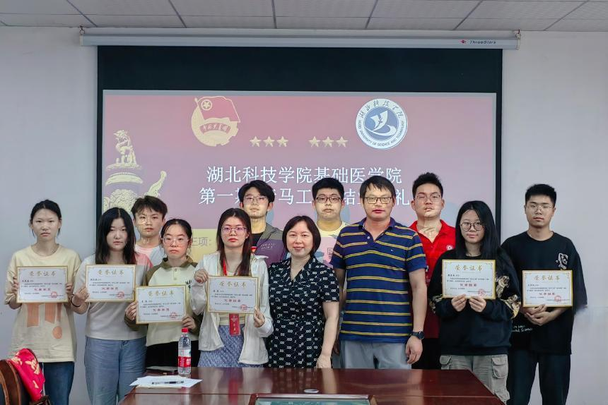 伴着国歌的激昂旋律,活动仪式拉开序幕。班主任黄乔木老师宣读了《bv伟德国际1946第一期“青马工程”培训班结业学员名单》以及《bv伟德国际1946第一期“青马工程”培训班“优秀班委”“优秀学员”名单》。佘同辉副书记为第一期优秀班委和优秀学员颁发荣誉证书,并对他们表示衷心的祝贺。