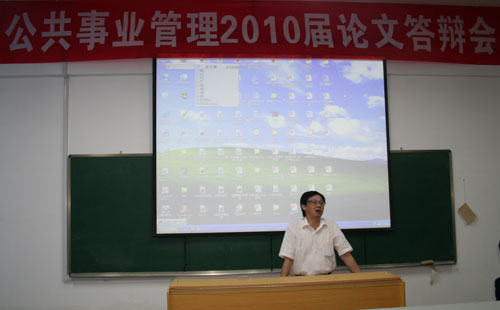 2010年5月8日,公共事业管理2010届论文答辩会在公司举行。bv伟德国际1946学术委员会以及公管、预防的10多名老师对40名员工的论文进行评阅。答辩会从上午8点到下午5点。最后,刘复兴经理、范杉书记和专业团队负责人蒋汝刚教授对答辩会进行了总结,针对员工的论文提出了具体意见和要求。