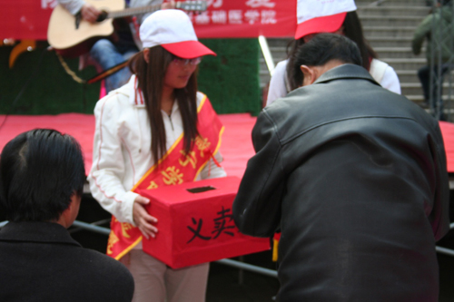 在演出同时,大街上随处可见bv伟德国际1946志愿者忙碌的身影。他们无私奉献在募捐义卖、发放“预防艾滋病”物品的活动当中,尽管寒风凛冽,他们依旧微笑着完成了此次光荣的工作。老员工志愿者们用实际行动播撒真情,传递爱心。最终,本次活动在大合唱《让世界充满爱》中圆满落幕。